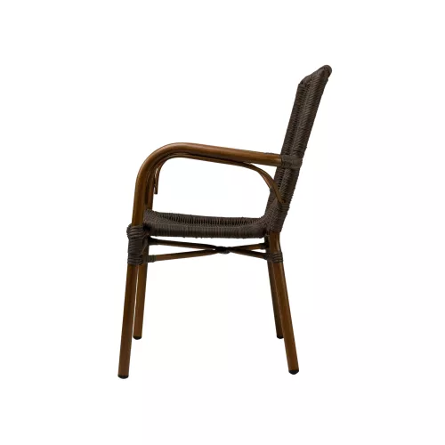 The Heerlen chair offers a perfect blend of durability and contemporary design, ideal for terrace restaurants, cafés, and bistros. Featuring a robust aluminium frame with Ø32*1.5mm tubing, it provides both strength and stability. The bamboo-look finish adds a natural elegance, making it a perfect fit for outdoor spaces. The UV-resistant PE round weaving ensures long-lasting quality, resistant to fading, cracking, or peeling under harsh sunlight. Designed to be stackable, the Heerlen chair is an excellent space-saving solution for busy venues. Whether you are enhancing your outdoor seating area or designing a new one, the Heerlen chair is a stylish, functional, and sustainable choice for any modern terrace.