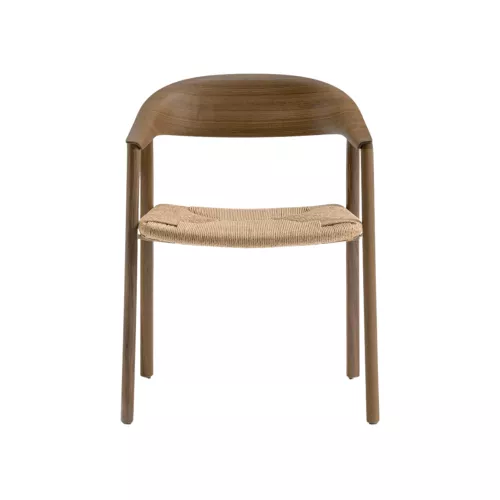Defined by a delicate balance of lightness and warmth, this armchair celebrates natural materials and refined craftsmanship. The three-dimensional plywood backrest—available in ash or American walnut—feels sculptural yet effortless, offering graceful ergonomics and an inviting, easy-to-handle form. The seat, hand-woven in Italy from cellulose rope, adds a soft, organic texture that enhances the chair’s natural character. Oval-shaped wooden legs flow seamlessly into the backrest, creating a harmonious silhouette reminiscent of a finely carved sculpture. Elegant, tactile, and timeless, it brings an element of quiet sophistication to hospitality and residential spaces alike.