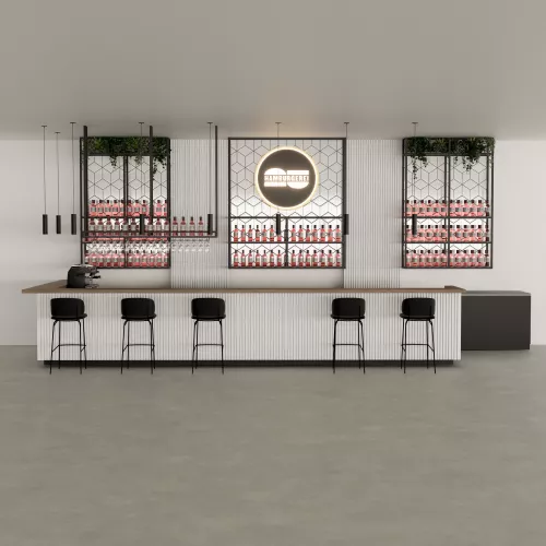 A fresh and contemporary bar concept defined by clean lines, natural warmth, and sculptural textures.