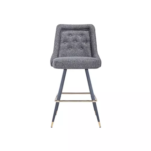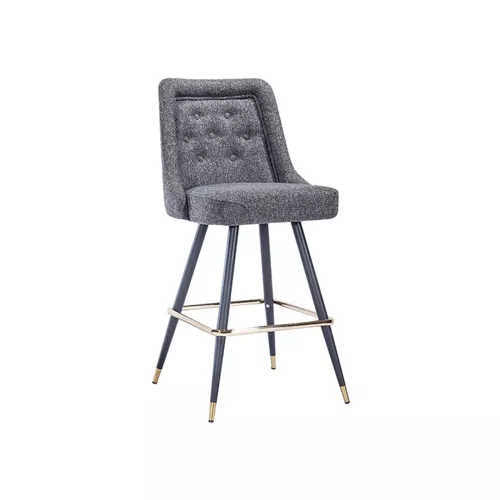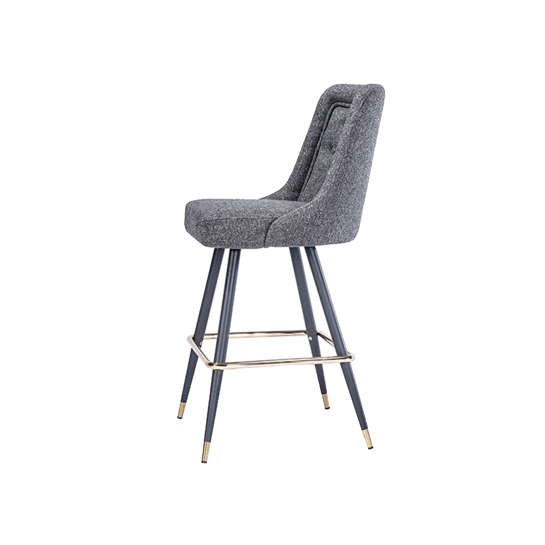 The Jim BK 001 B barstool combines elegance with robust functionality. Its engineered metal frame and footrest ensure durability, while the upholstered seat, available in professional fabrics or faux leather, provides comfort. Decorative buttons on the back add sophistication, making it perfect for bars, hotels, and other horeca venues.