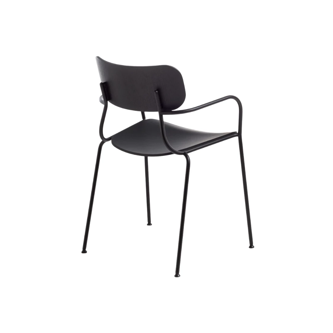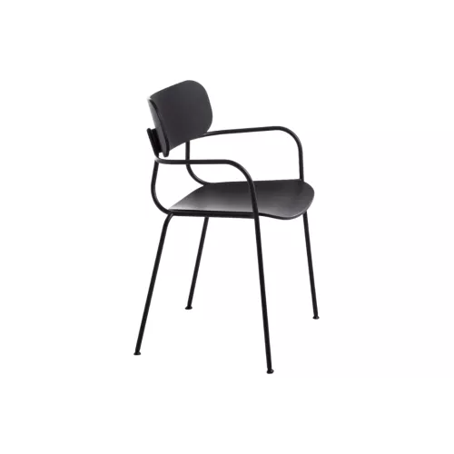 The Kiyumi Wood A is a stylish 4-legged chair featuring a black painted steel frame combined with a tinted ash veneered plywood seat and backrest. The frame is available in several finishes, including M7 Black, M8 Brown, M12 Graphite, M16 Milk, M19 Oxide red, and M24 Beige. The seat and backrest come in a variety of veneer options, such as W1 Natural, W2 Black, W3 Walnut, W4 Cherry, and W5 Wenge, allowing you to customize the chair to suit your interior style.