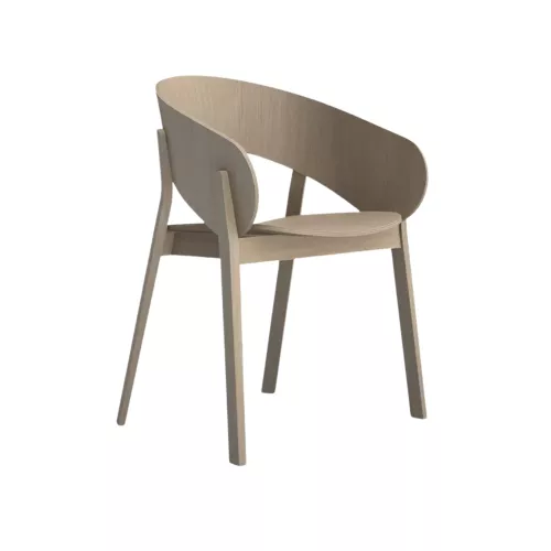 Kobi A is an armchair crafted from durable beech wood, ideal for high-traffic environments. The seat can be veneered or upholstered in a wide range of fabrics. Its customizable design and wood tones, combined with modern architectural inspiration, make it a stylish and resilient choice for hospitality settings.