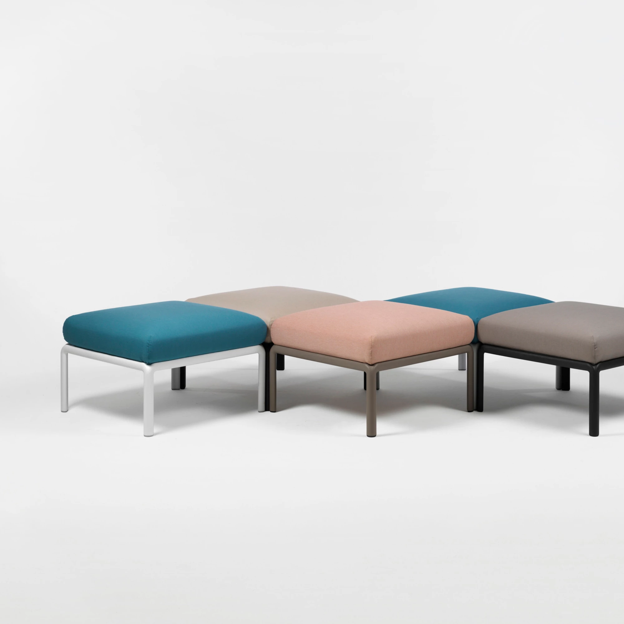 The Komodo Pouf is a stylish and versatile seating solution for commercial outdoor spaces. Featuring a durable polypropylene frame reinforced with uniformly colored fiberglass resins and UV protection, it ensures long-lasting performance even under direct sunlight. Each pouf comes with a comfortable cushion, available in Rosa Quarzo or Grey, while the frame can be chosen in White, Anthracite, Tortora, or Agave. Perfect for terrace restaurants, cafés, and bistros, the Komodo Pouf combines comfort, durability, and modern design, providing both functionality and elegance for outdoor hospitality settings.