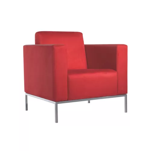 The Lancelot armchair combines modern elegance and durability for horeca interiors. Featuring a polished stainless steel frame and nosag springs for lasting comfort, it includes a fully upholstered seat and backrest. Available in a wide range of contract fabrics or faux leather, it fits perfectly into hotel rooms, lobbies, and stylish lounge areas.