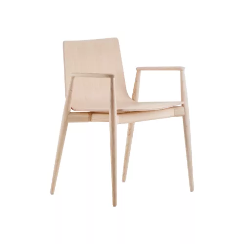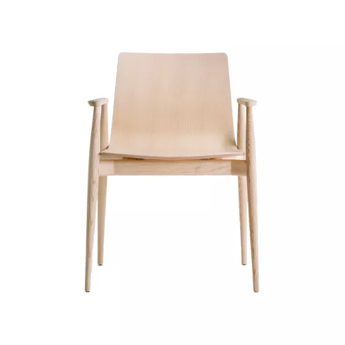 The Malmö 395 armchair celebrates the comforting warmth of ash wood, marrying traditional craftsmanship with a sleek, tapered silhouette. Its ash-veneered plywood shell and solid ash frame—including gracefully contoured armrests—showcase design elements in their most honest form, with subtly reinforced joints that naturally slim toward the edges. The result is an indoor chair that feels both substantial and airy, combining a timeless appeal with an elegant lightness that transforms any space.