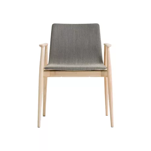 The Malmö 396 armchair combines the inviting warmth of ash wood with a gracefully tapered silhouette inspired by classic craftsmanship. Its upholstered shell rests on a robust frame and armrests crafted from solid ash, where joints are subtly reinforced and naturally slim toward the edges. This design celebrates purity of form, offering both sturdy support and an airy elegance. Customizable in a spectrum of professional-grade fabrics, the Malmö 396 adapts seamlessly to any interior, marrying tradition with contemporary comfort.