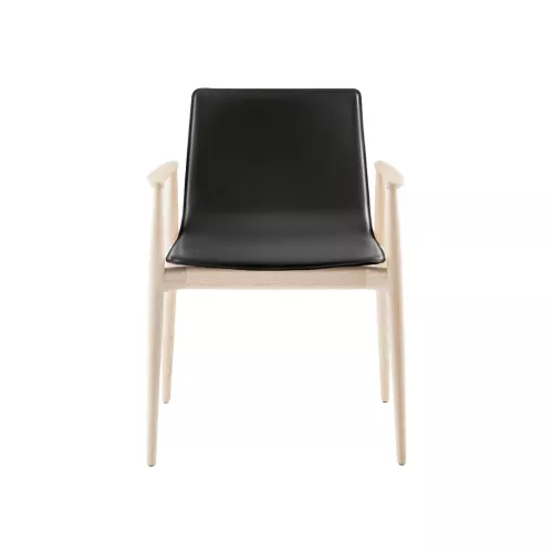 The Malmö 397 armchair radiates inviting warmth through its ash wood construction, tapered profile, and timeless design. Its genuine leather shell sits atop a sturdy ash frame and armrests, where joints are subtly beefed up and naturally slim toward the edges. The result is an indoor chair that balances substantial support with feather-light elegance. Offered in a spectrum of leather hues, the Malmö 397 effortlessly complements any décor.