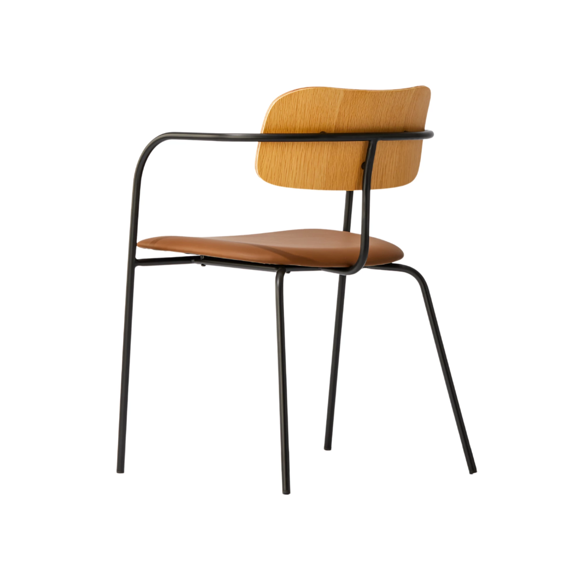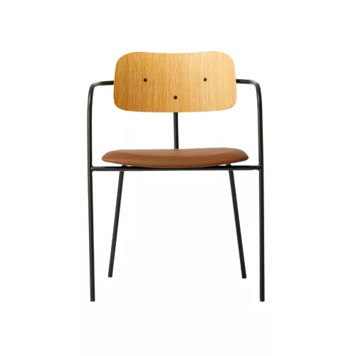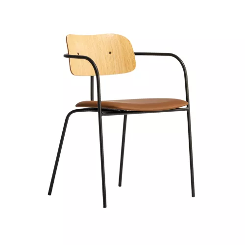 Maxwell is a contemporary metal chair with armrests, featuring a durable steel frame, upholstered seat, and elegant wooden backrest. With extensive customization options in professional fabrics or faux leather, it’s the perfect fit for HoReCa spaces and diverse interior design styles.