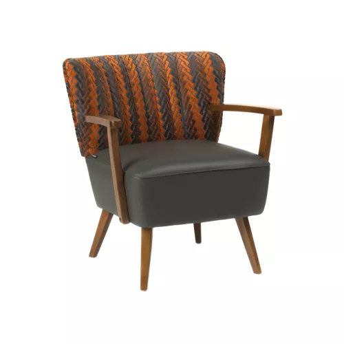 Elegant armchair with a solid beechwood frame, designed to deliver both comfort and durability in professional environments. Features high-density foam and an integrated spring system for enhanced seating comfort. Available in a wide selection of contract-grade fabrics and synthetic leathers. The wooden frame can be finished in various stains to match your interior.