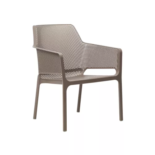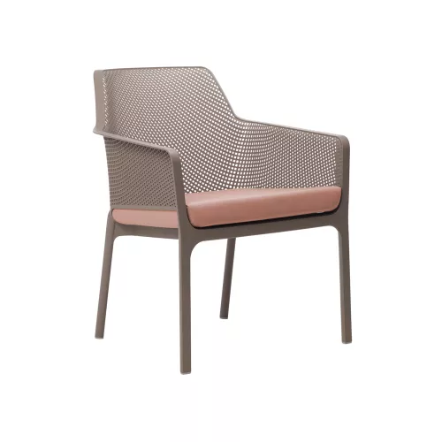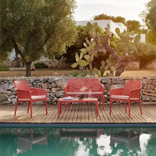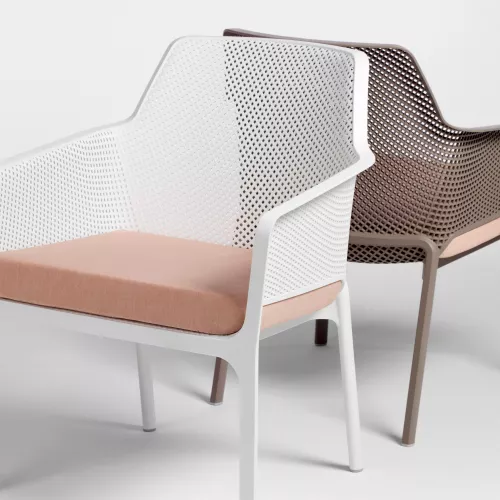 The Net Relax lounge armchair is the perfect fusion of comfort, style, and durability for professional hospitality spaces. Crafted from fiberglass-reinforced polypropylene with a matt finish, it features non-slip feet for stability and a stackable design for easy storage. Weather- and UV-resistant, it’s ideal for intensive outdoor use. Available in elegant frame colors—White, Anthracite, Salice, Tortora, Senape, Coral—paired with plush polyurethane foam cushions (density 28 kg/m³) in Grey Stone, Rosa Quarzo, Senape, Denim, The Verde, Sardinia, White, or Grey. Designed for terrace restaurants, cafés, and bistros that demand both refined aesthetics and long-lasting performance.