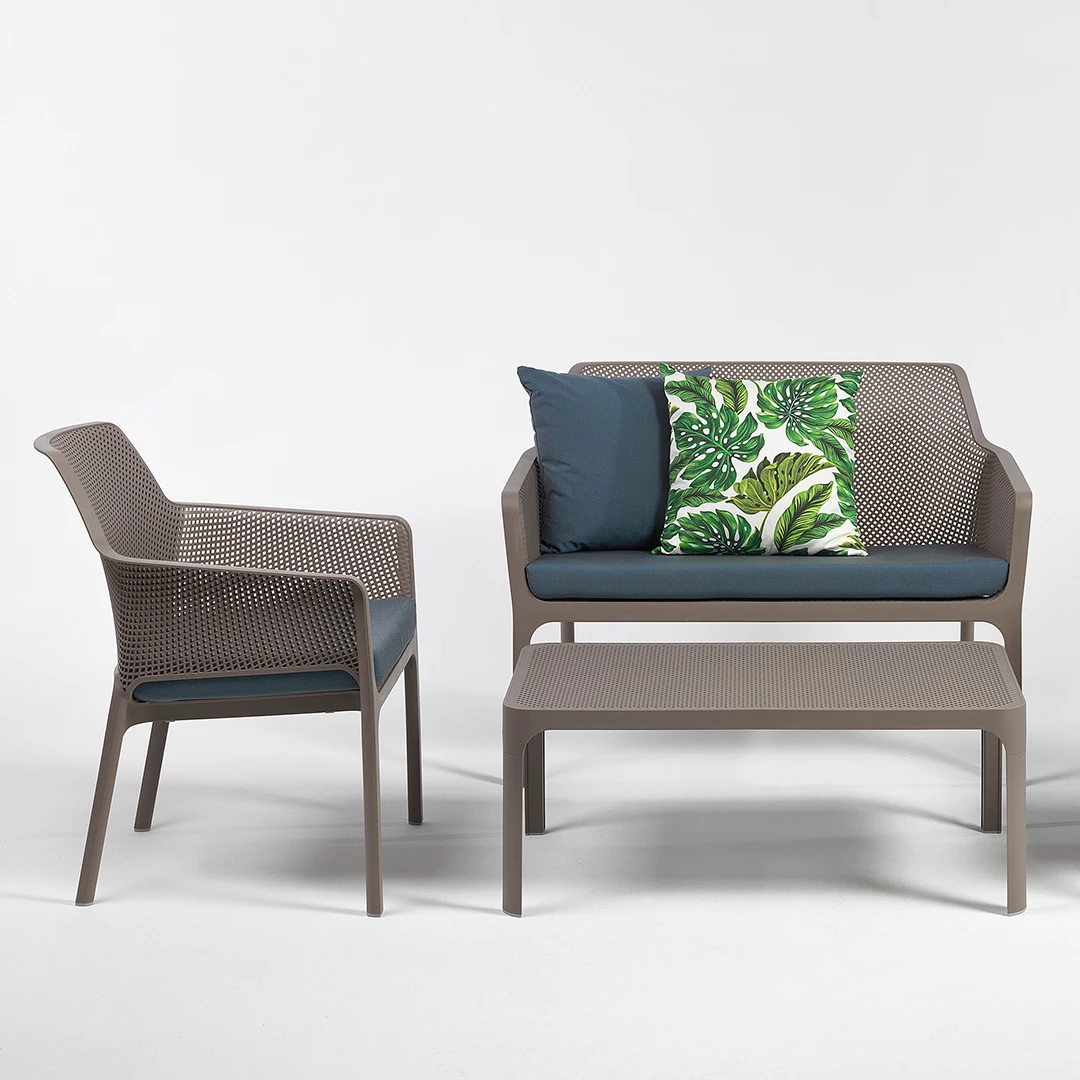 The Net Table is a modern and durable side table, ideal for professional outdoor spaces. Made from monobloc fiberglass polypropylene with UV additives and a refined matt finish, it ensures long-lasting color stability and weather resistance. The table features non-slip feet for safety and a recyclable frame for sustainability. Available in six sophisticated colors—White, Anthracite, Salice, Tortora, Senape, Coral—this polypropylene table is perfect for terrace restaurants, cafés, and bistros, combining style, practicality, and commercial-grade durability.