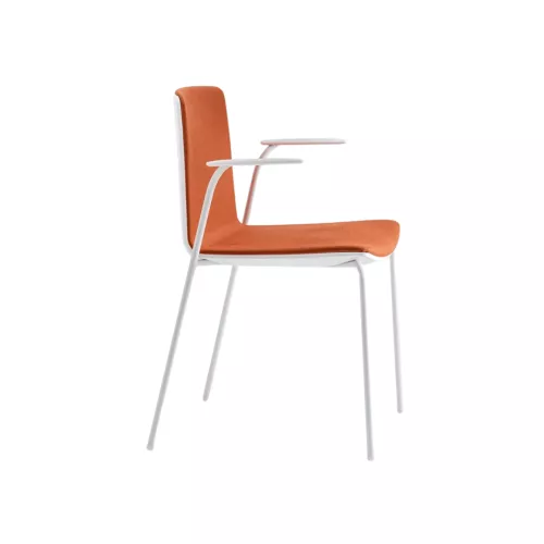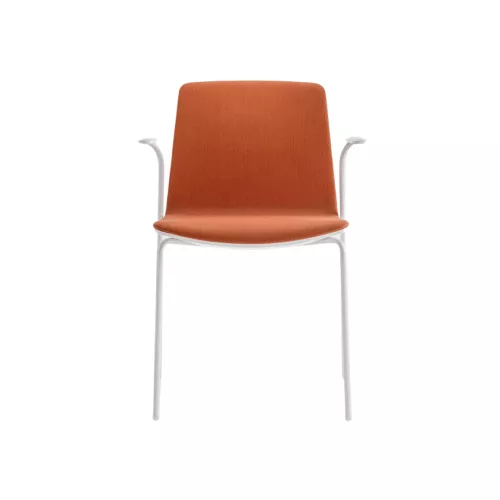The Noa collection combines the elegance of its proportions with the comfort of the seat, thanks to innovative construction techniques. The armchair features a polycarbonate back shell and an upholstered seat. It has a sturdy 16mm steel tube frame, available in white, black powder-coated, or chrome finishes. The outer shell is made from durable polycarbonate, while the inner shell is upholstered with fire-retardant fabric. PC finishes: white and black.