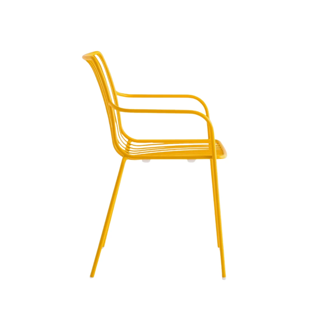 Nolita is a family of outdoor seating that pays homage to a legacy dating back to 1963, when Mario Pedrali designed his first metal garden chairs. This version features a high backrest and is crafted entirely from steel, offering strength and durability in outdoor settings. Its stackable design ensures efficient storage, and an optional seat cushion provides added comfort.