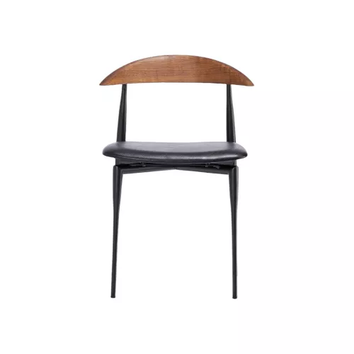 North is a versatile metal chair with a durable steel frame, upholstered seat, and wooden backrest. It offers a wide variety of customization options in professional fabrics or faux leather. A great choice for HoReCa settings and a range of interior design styles.