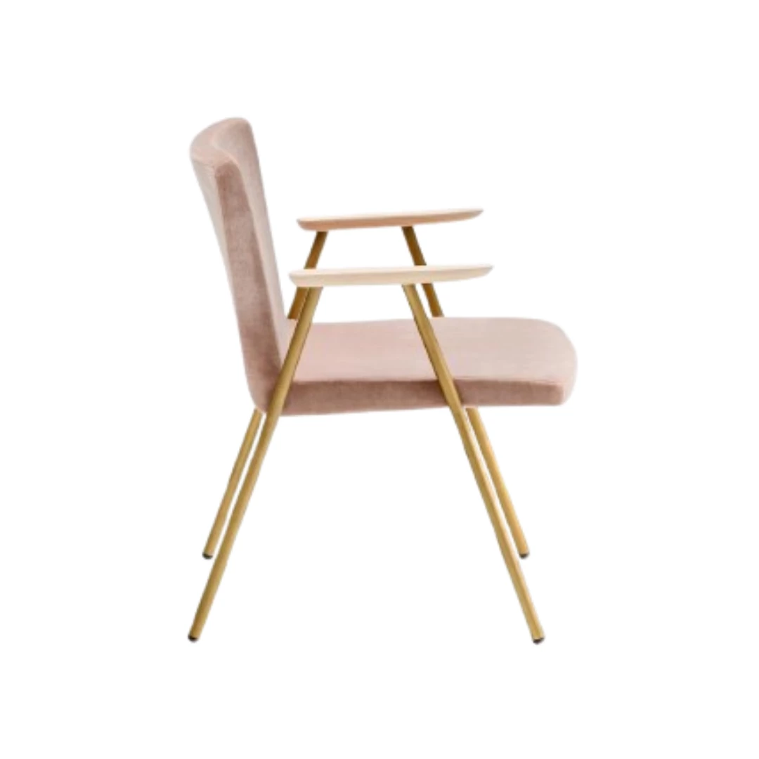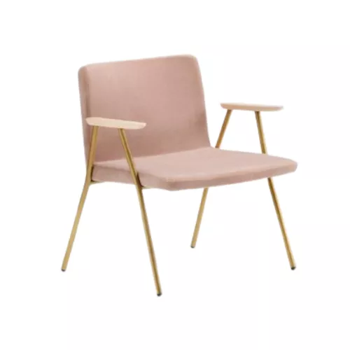 Osaka 5729 – a refined lounge chair with a Ø20 mm tubular steel frame, elegant ash armrests, and a padded shell upholstered in fabric, leather, or faux leather. Combining comfort and style, it’s perfect for indoor lounges, creating inviting and sophisticated seating areas.