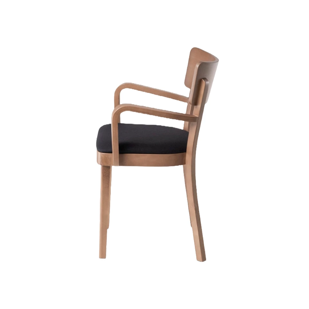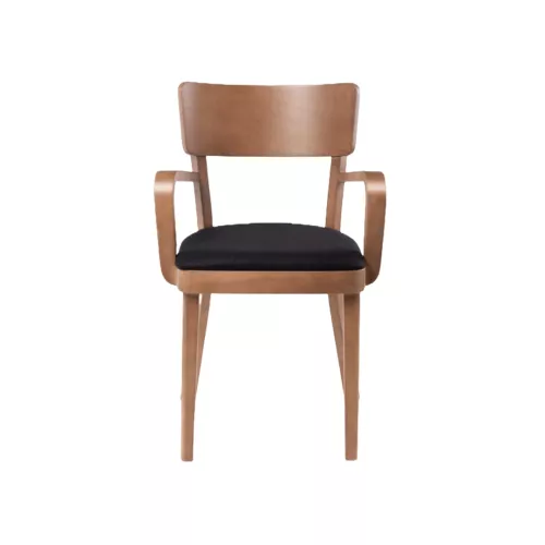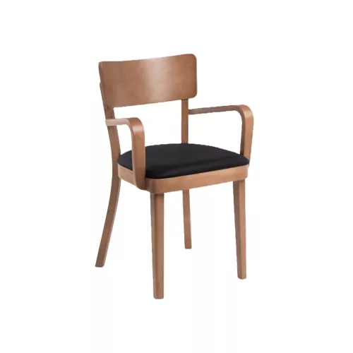 The Pawel A FS wooden chair with armrests combines timeless simplicity, durability, and comfort. Its universal design fits seamlessly into various interiors, offering long-lasting style and functionality. Crafted from sturdy beech wood in multiple stain colors, it features an upholstered seat available in a wide range of fabrics or faux leather—perfect for any HoReCa setting.