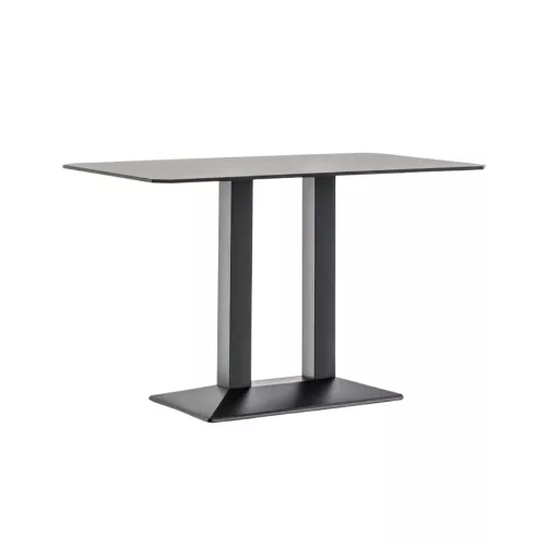 Quadra 4560 is a two-column table base designed for stability and versatility in horeca spaces. With pyramid-shaped, sand-blasted cast iron bases and powder-coated steel columns, it supports rectangular tops up to 160x90 cm. A reliable, stylish choice across various interior styles. Supplied unassembled for easy transport and installation.