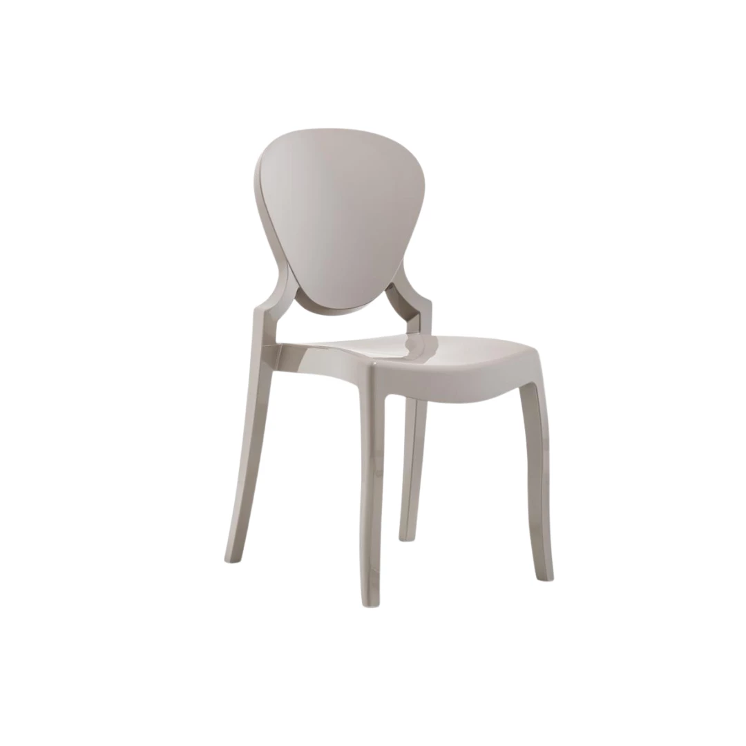 The Queen chair blends traditional inspiration with modern innovation. Its classic silhouette is reinterpreted through contemporary design and advanced production technology. Made using injection-moulded polycarbonate, this chair offers both elegance and durability, suitable for various interior or event settings.