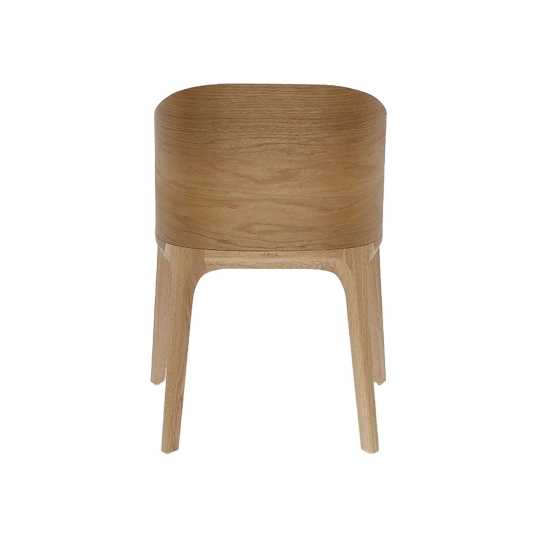 The Rainbow A upholstered chair with armrests blends classic elegance and modern design. Its simplified form and exposed natural wood backrest highlight the beauty of craftsmanship. Made with a durable beech wood frame and subtle plywood structure, it offers comfort and style. Available in various wood stains and upholstery options, perfect for HoReCa spaces.