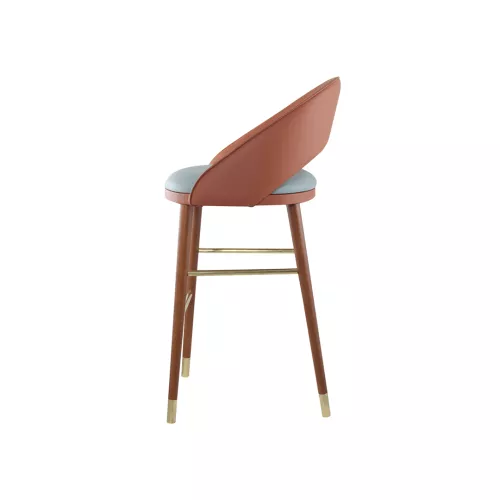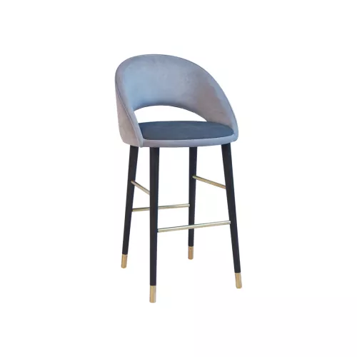 Simtra BK is a durable barstool with a solid beechwood frame coated in polyurethane lacquer, available in various wood stain finishes. Its curved backrest and metal footrest provide extra comfort. Upholstered with high-density foam and a broad selection of professional fabrics or faux leather, it ensures long-lasting wear, fitting perfectly into diverse horeca locations and design styles.