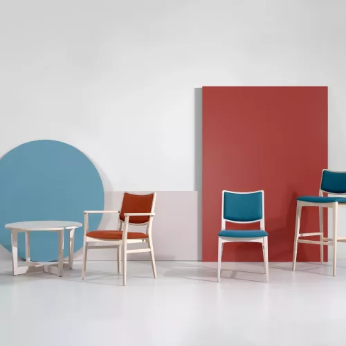 Soul S is a wooden chair designed for dynamic horeca spaces. Featuring a sturdy beech wood frame available in multiple stain colors, it includes an upholstered seat and backrest customizable in professional-grade fabrics. As part of the Soul collection, it combines style, comfort, and adaptability across various interior design settings.