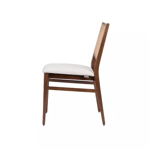 Soul S Wicker is a stylish wooden chair designed for horeca settings. It features a durable beech wood frame, customizable in various stain colors, with an upholstered seat and a cane backrest for natural texture. As part of the Soul collection, it offers both elegance and practicality for diverse interior styles.