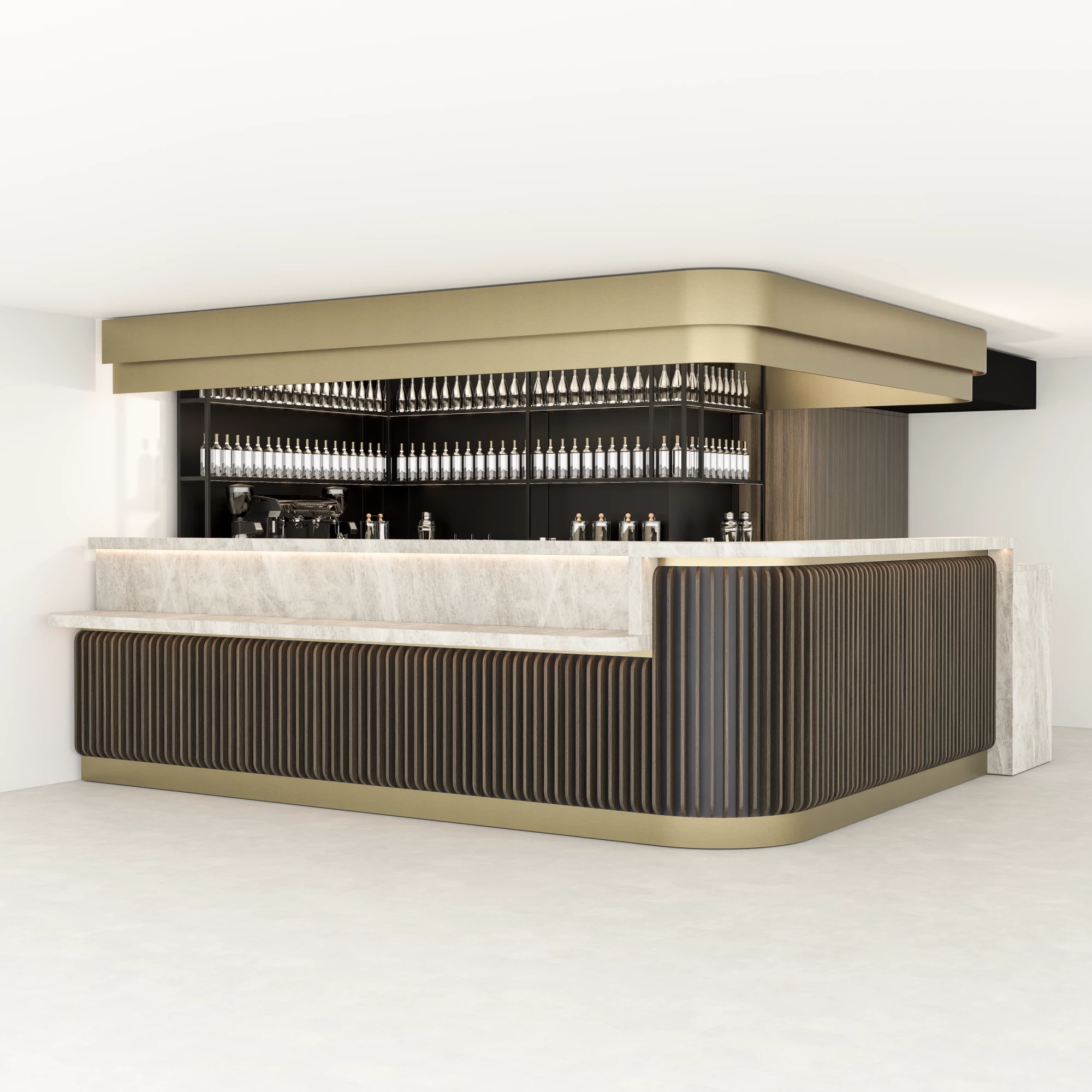 A refined contemporary bar concept where warm materials, deep tones, and subtle metallic accents come together in a harmonious, modern composition.