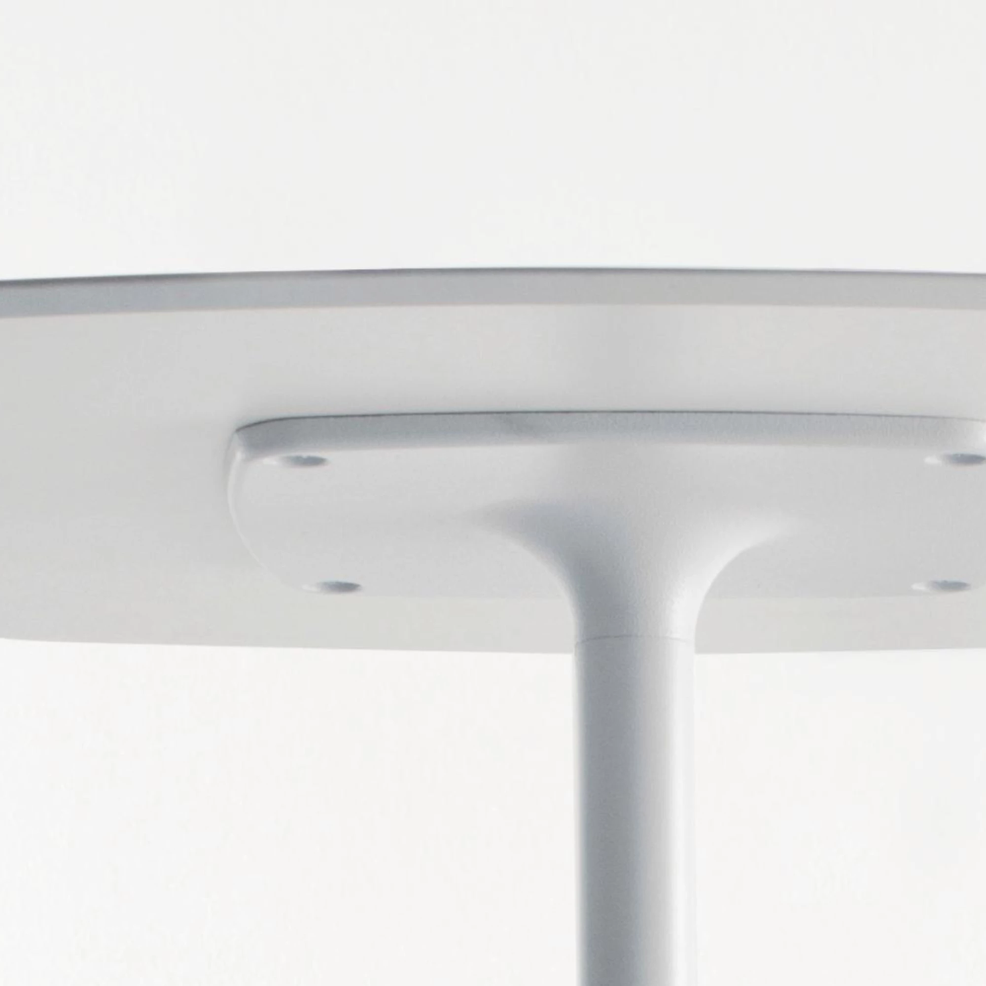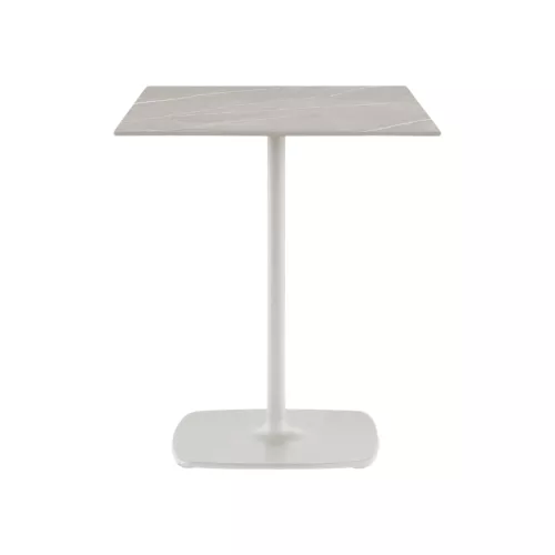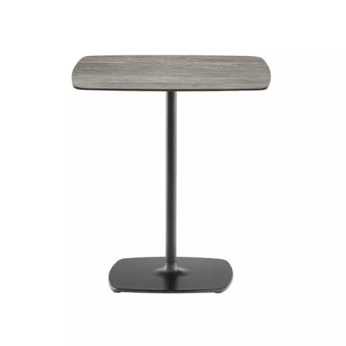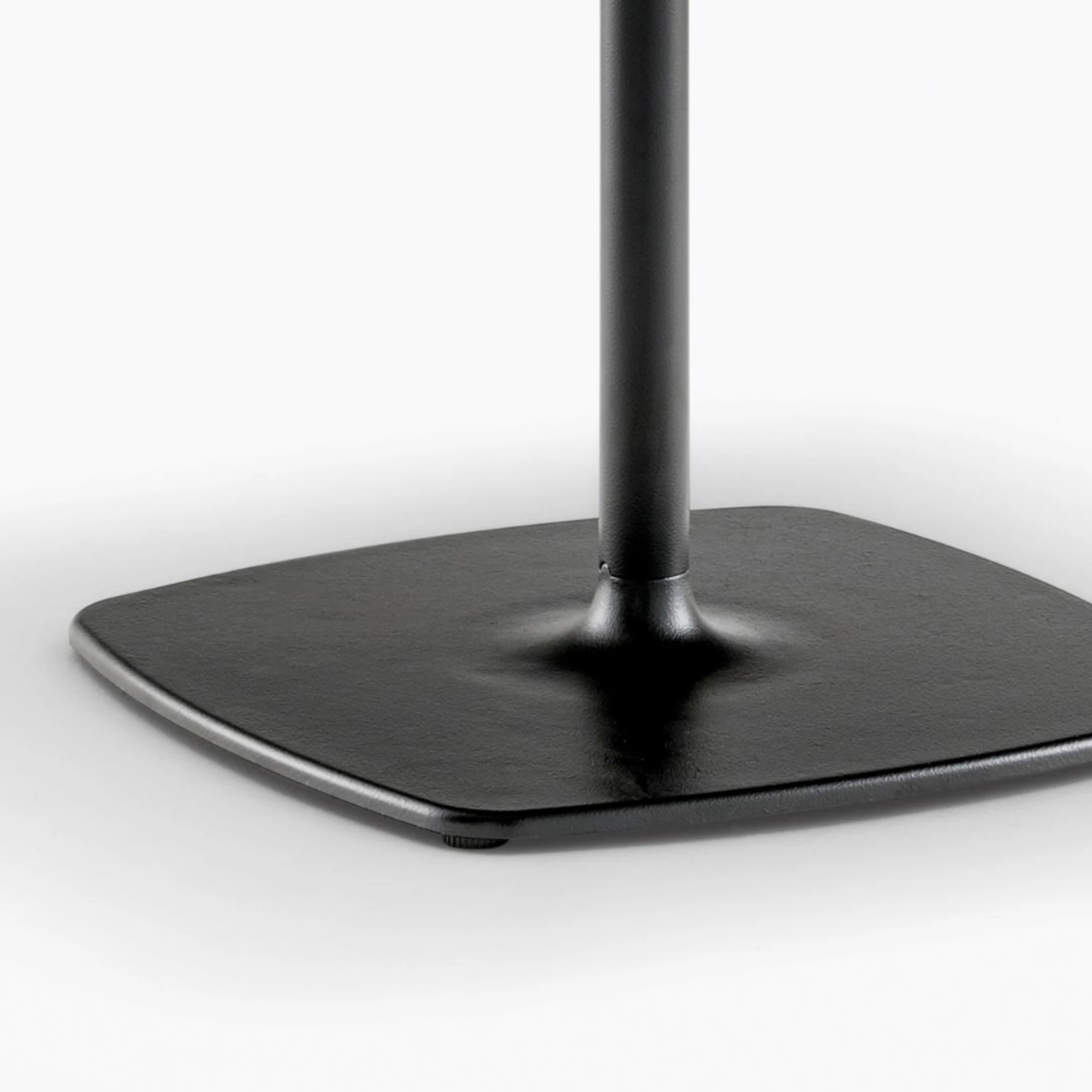 Stylus table base stands out for its minimalistic look and organic outline, thanks to the slim central column and the rounded corners of its flat square base.