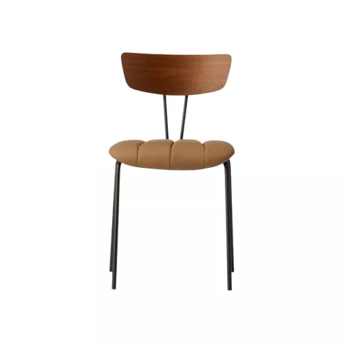 Summer is a stylish metal chair with a solid steel frame, combining a soft upholstered seat with a beautifully finished wooden backrest available in various stain colors. The upholstery comes in a wide range of professional fabrics or faux leather. Versatile and durable, Summer is a great fit for any HoReCa location seeking comfort and modern design.