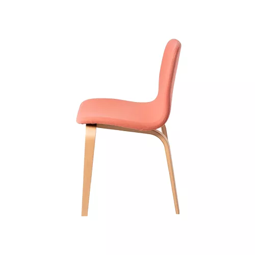 The Tommy UPH wooden chair blends contemporary elegance with advanced wood-bending craftsmanship. Its upholstered seat and tapered plywood frame feature subtle changes in thickness, emphasizing thin edges while ensuring strength. Smooth, organic lines create a modern, inviting look. Available in professional fabrics or faux leather and multiple beech wood stains, it’s ideal for horeca spaces.