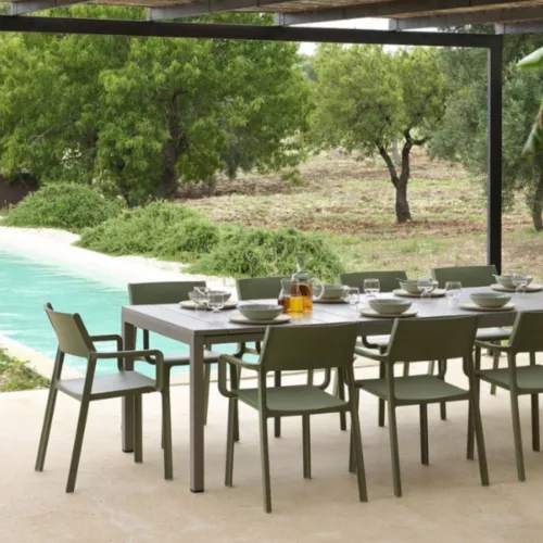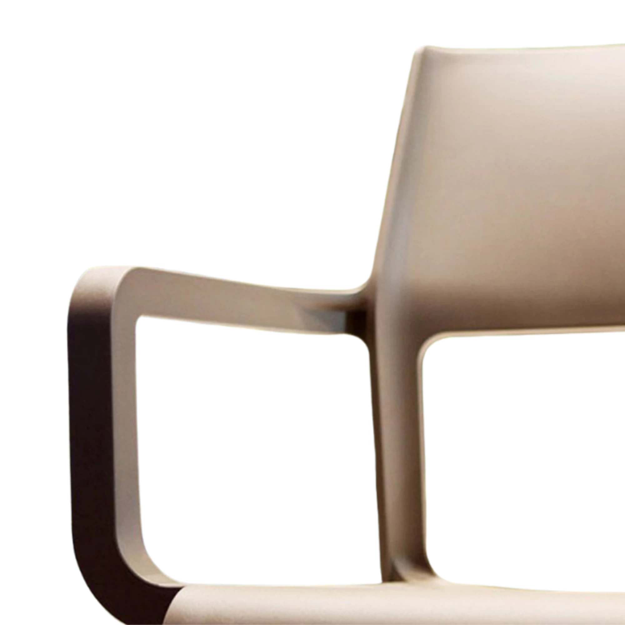 Trill A is a stackable armchair designed to combine durability, functionality, and modern aesthetics. Made from uniformly colored fiberglass polypropylene resin and treated with UV additives, it offers excellent resistance to weather and fading, making it perfect for both indoor and outdoor use. The chair features integrated armrests for added comfort, non-slip feet for stability, and a refined matte finish that enhances its elegant appearance. Its stackable design ensures easy storage and efficient use of space, whether in a terrace, café, or hospitality setting. Trill A is available in a range of stylish colors: white, anthracite, grey, rosa bouquet, tortora, agave, ottano, tabacco, and senape.