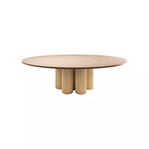 The TRILOGY 7 WOOD table is an elegant wooden table, designed for restaurants, bars, hotels, and waiting areas. Available in two sizes, the table features a durable round wooden top with diameters of Ø200 cm or Ø250 cm, and a height of 72 cm. With a sturdy base diameter of Ø102.5 cm, it offers stability and comfort for both casual and formal settings. The TRILOGY 7 WOOD is perfect for creating a welcoming and stylish atmosphere in any hospitality space.