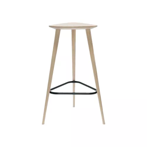 The Tripod BK WS wooden barstool combines modern minimalism with durable craftsmanship. Its triangular seat and metal footrest provide both comfort and stability. Available in four heights (36, 49, 61, 78 cm) and various wood stain finishes, it complements diverse HORECA interiors such as bars, lounges, and modern hospitality spaces.
