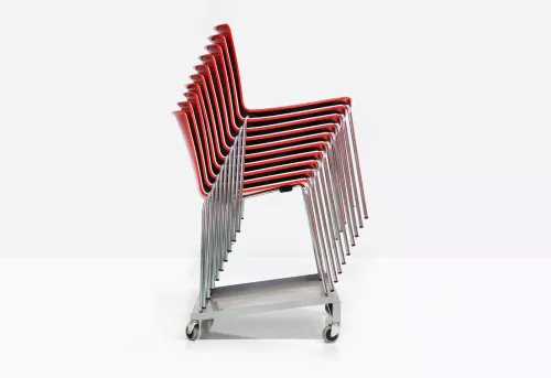 Tweet 890 chair merges a sleek, rational polypropylene shell with a Ø14 mm steel-tube frame, available in chrome or powder-coated finishes. Antistatic and UV-resistant, this stackable chair (up to 10 high) adapts effortlessly to any contract setting with a wide palette of mono- or bi-color options.