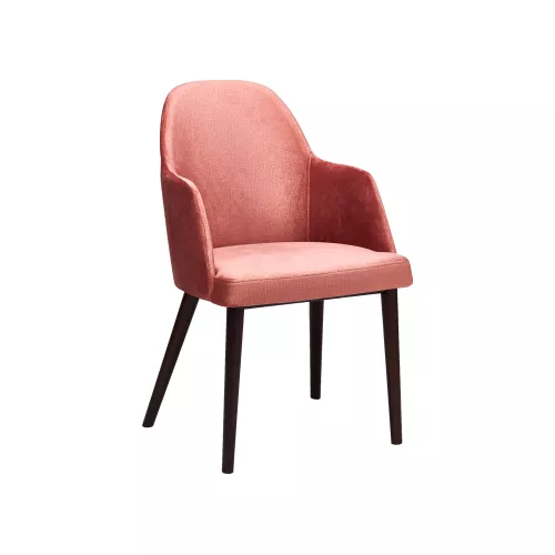 This upholstered armchair offers a perfect blend of elegance and durability, making it ideal for restaurants, lounges, and hospitality venues. Designed with a fully padded seat and backrest, it features high-density polyurethane foam for long-lasting comfort under intensive use. The base is crafted from solid beech wood and can be customized in various wood finishes. Available with either round or square legs, the armchair maintains a refined silhouette and is fully upholstered in professional fabrics or synthetic leather, offering flexibility in style and design.