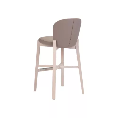 Velveton BK is a refined wooden barstool crafted for horeca interiors. Built on a sturdy beech wood frame, available in various stain finishes, it features a fully upholstered seat and backrest. The upholstery is offered in a wide range of professional fabrics, making it a versatile choice for stylish bars, restaurants, and hospitality settings.