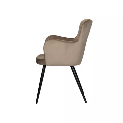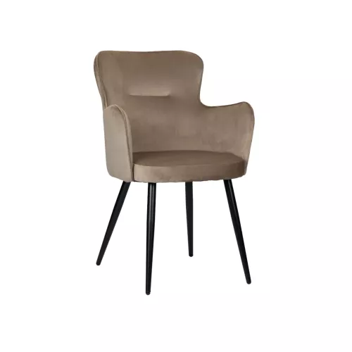 The Vignis chair is a stylish restaurant piece that adds a touch of sophistication to any interior. Featuring upholstered seating, armrests for extra comfort, and sturdy steel legs, it comes in elegant colors such as Sand White, White Pearl, Black, or Coco. Ideal for refined horeca spaces looking to elevate their atmosphere.
