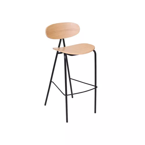 Warm BK is a versatile barstool with a durable steel frame and metal footrest, available in two versions: with veneer seat and back, or with upholstered seat and back. For the upholstered version, a wide range of professional fabrics or faux leather ensures both comfort and durability. Ideal for bars, restaurants, and various interior design styles.